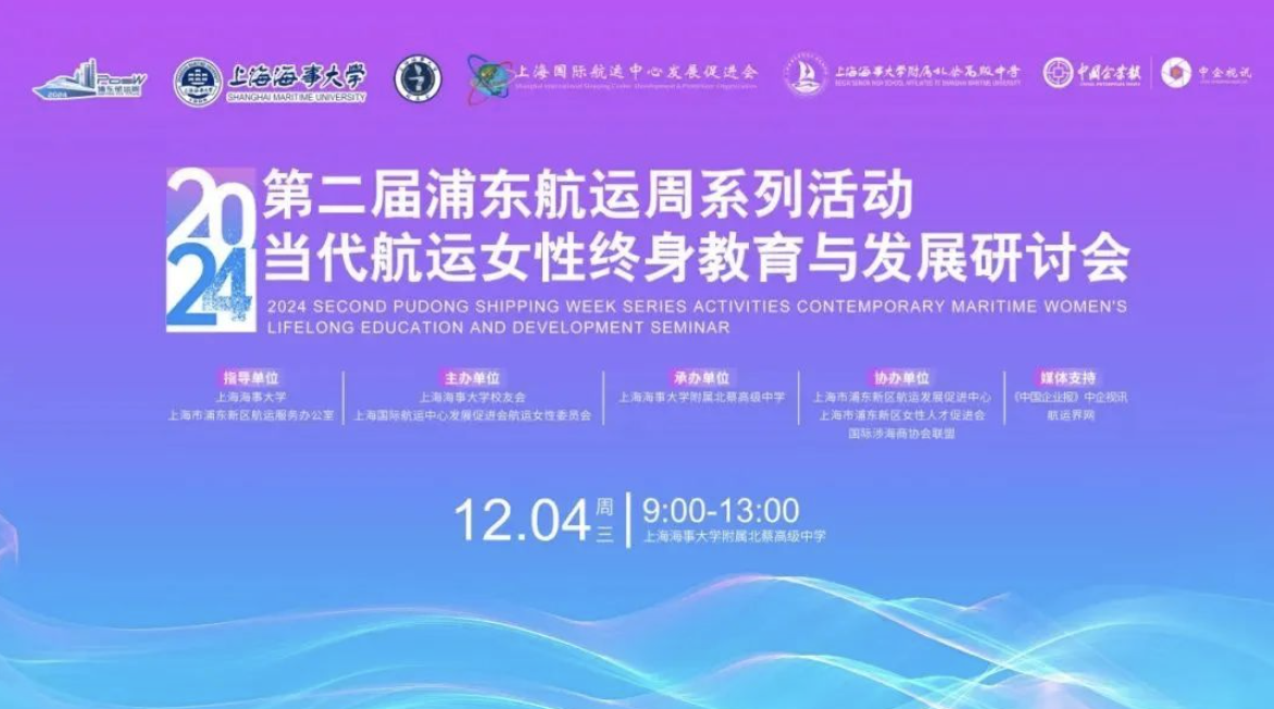 12月4日,2024第二屆浦東航運周系列活動之“當代航運女性終身教育與發(fā)展研討會”在上海海事大學附屬北蔡高級中學成功舉辦,匯聚來自航運界、教育界的專家學者和精英女性,分享實踐經(jīng)驗、成功案例和前沿思考,共同探討航運女性終身教育的路徑與策略,激發(fā)航運女性的創(chuàng)新精神和領導力,為航運事業(yè)的可持續(xù)發(fā)展注入新的活力。