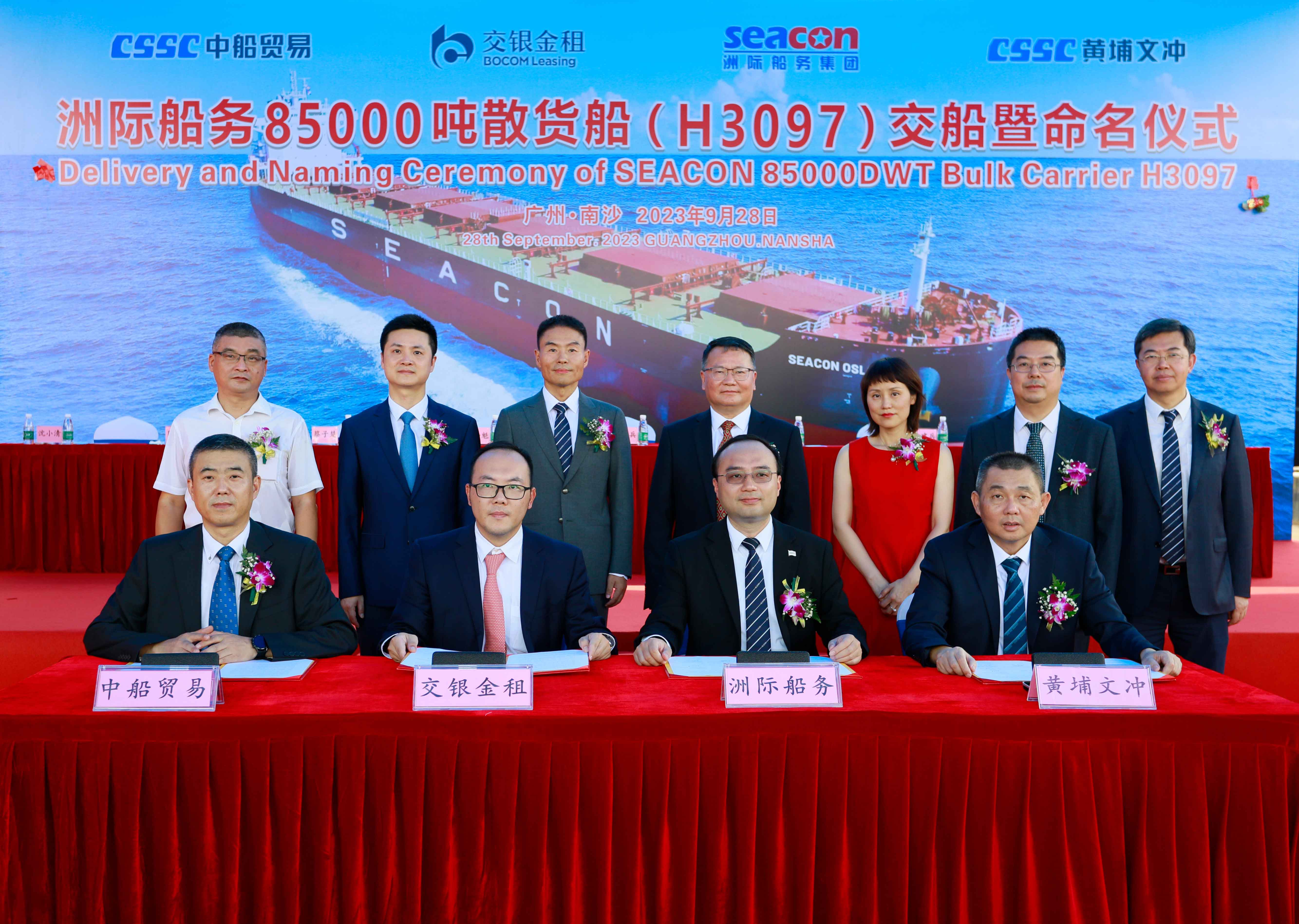 9月28日,中國船舶集團有限公司旗下中船黃埔文沖船舶有限公司聯(lián)合中國船舶工業(yè)貿易有限公司為洲際船務集團控股有限公司(洲際船務:02409.HK)建造的85000載重噸(DWT)散貨船在中船黃埔文沖船舶有限公司龍穴廠區(qū)命名交付。