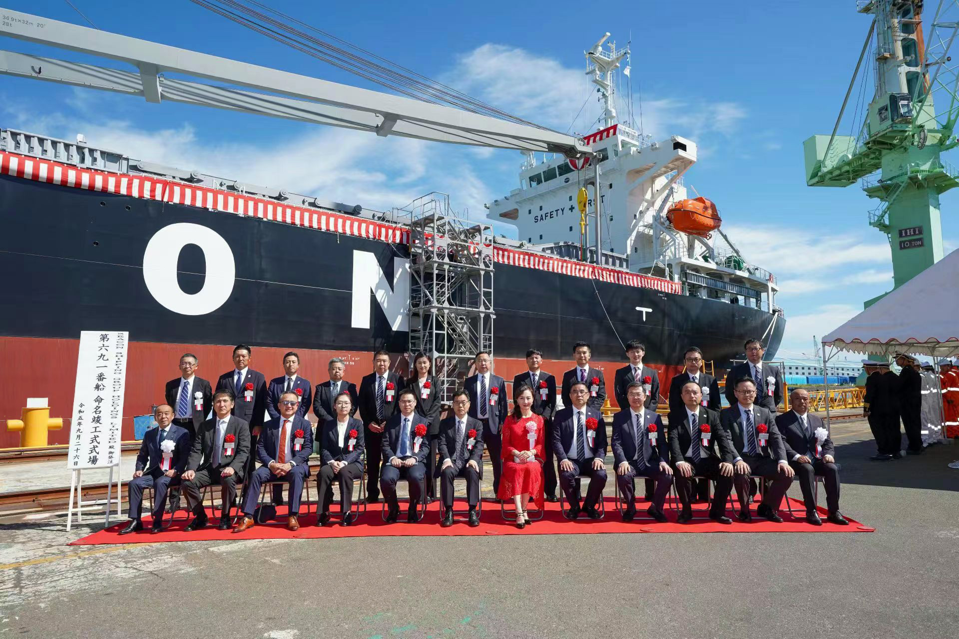 村上秀造船株式會社代表取締役社長村上英治、普華永道中天會計師事務所合伙人張國俊、北銀金融租賃公司資產(chǎn)管理經(jīng)理張春雨、漢坤律師事務所合伙人王哲、丸紅株式會社航空?船舶本部副本部長中川聡、日本海事協(xié)會東日本管區(qū)事務所長林哲也,及洲際船務集團控股有限公司執(zhí)行董事、總經(jīng)理陳澤凱等參加交付儀式。教母張蔚女士為新船命名并砍纜,同時送上祝福:祝愿新船一帆風順,一路平安,揚帆遠航,載譽全球。