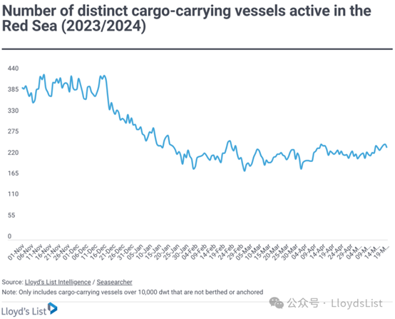 胡塞的進(jìn)一步威脅并沒有影響紅海的通行。上周,每天平均有243艘船只穿越紅海,這是自2月以來的最高水平。