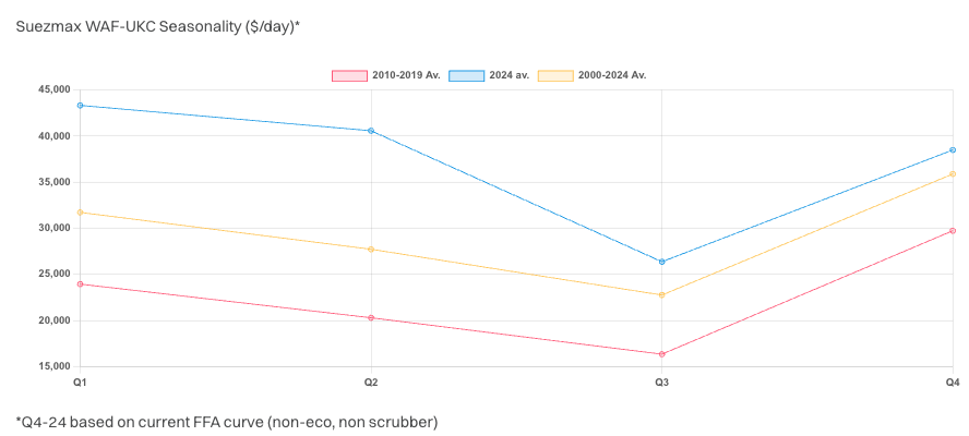 這家船舶經(jīng)紀(jì)商表示,原油市場(chǎng)去年第三季度市場(chǎng)曾從低谷強(qiáng)勁反彈至第四季度的高點(diǎn),我們預(yù)計(jì)今年這種趨勢(shì)將再次上演。隨著第四季度美國(guó)進(jìn)行維護(hù),原油出口有望增加,而亞洲煉油廠也將在停產(chǎn)后開(kāi)始采購(gòu)原油。盡管中國(guó)的總需求水平仍然令人擔(dān)憂,但即便在增長(zhǎng)放緩的情況下,該行業(yè)的前景仍然保持健康,這表明當(dāng)前的疲軟主要是由季節(jié)性趨勢(shì)所驅(qū)動(dòng)。