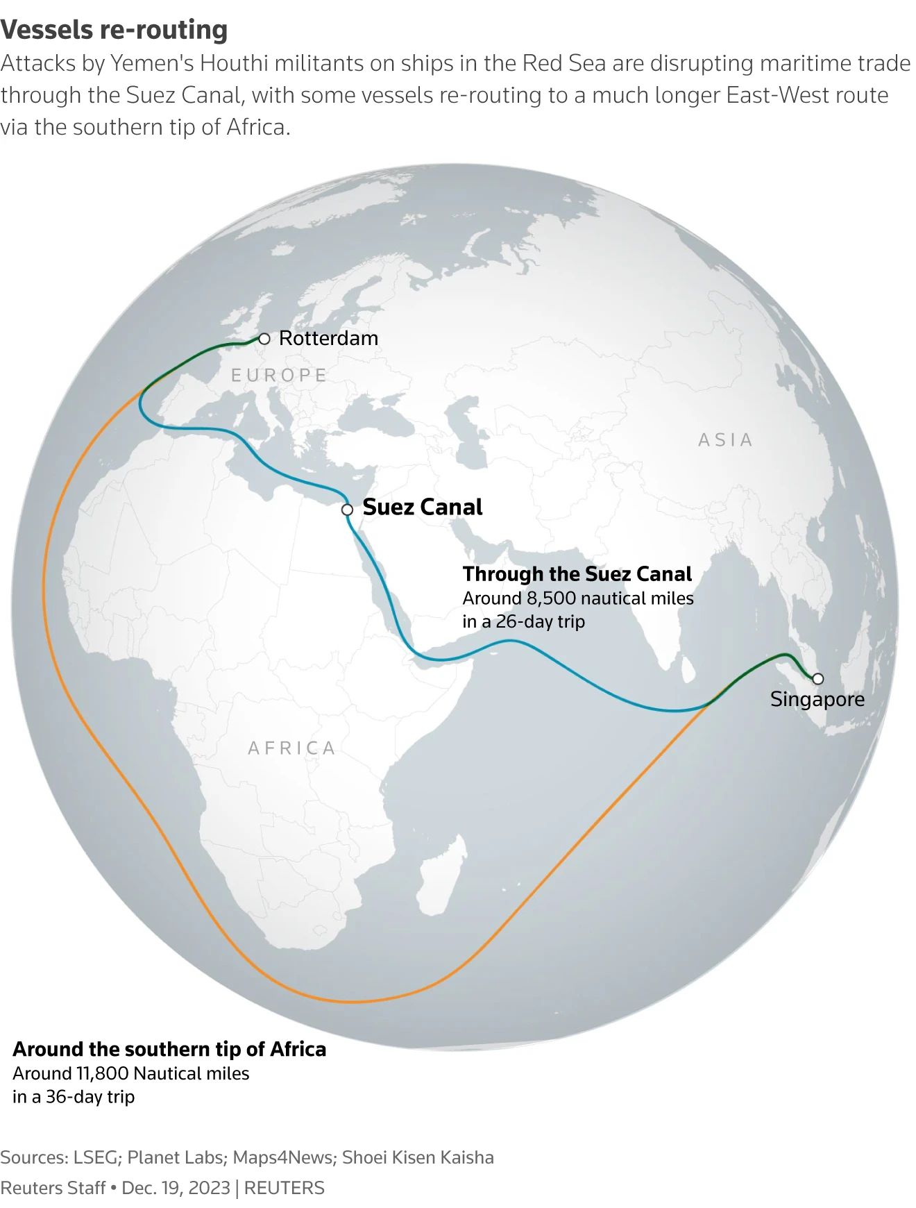 大宗貿(mào)易巨頭警告:紅海改道導(dǎo)致航運(yùn)業(yè)燃油消耗增加50萬(wàn)桶/天!