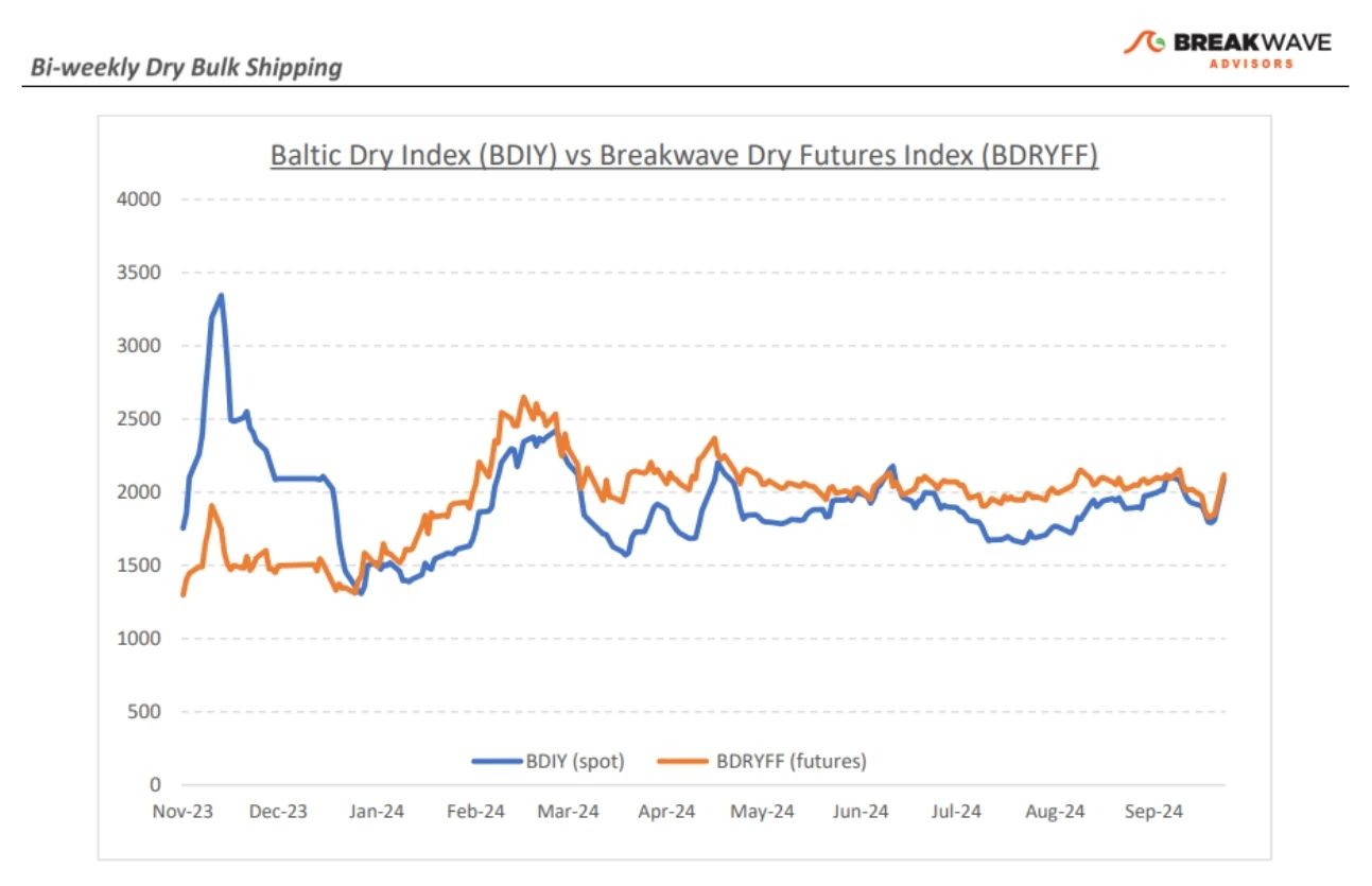 干散貨 ETF 交易平臺Breakwave Advisors在最新周報中表示,中國近期一連串的刺激政策宣布后,鐵礦石市場再度掀起波瀾,期貨價格的大幅波動反映了市場的高度投機性。作為大宗商品的鐵礦石,其價格波動更多由資金流動驅(qū)動,盡管從長期來看,基本面因素至關(guān)重要,但短期內(nèi)的價格走勢幾乎完全由每日新聞主導(dǎo)。