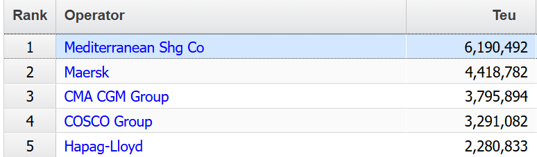 在五大班輪巨頭中,MSC是最大老齡集裝箱船船東。目前其旗下運(yùn)營315艘建造于2004年或更早的船舶。而馬士基雖然沒有足夠的新船訂單來替換老舊船舶,但已承諾未來五年內(nèi)更新80萬TEU運(yùn)力。