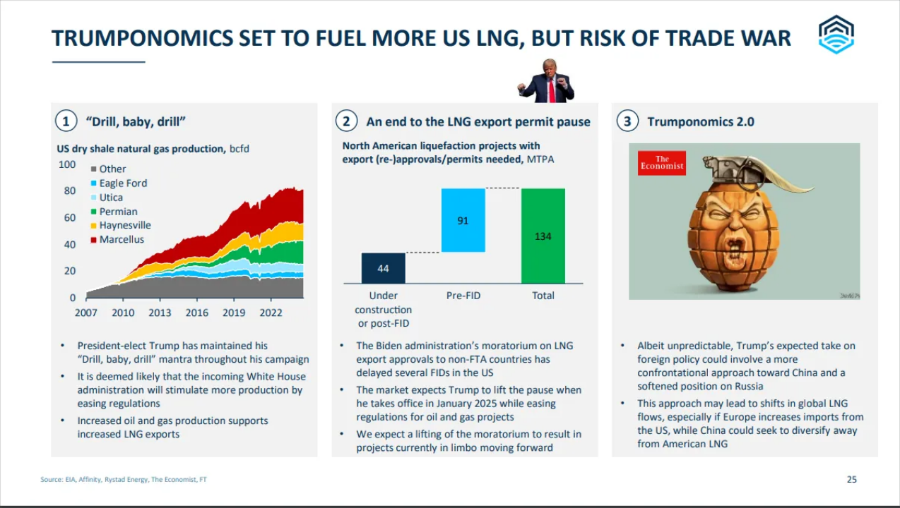 Flex LNG 首席執(zhí)行官?ystein Kalleklev表示,預(yù)計(jì)特朗普明年1月就任美國(guó)總統(tǒng)后,將有多達(dá)9000萬噸的液化天然氣計(jì)劃產(chǎn)量繼續(xù)增加,但他的貿(mào)易政策將如何實(shí)施目前尚無定論。