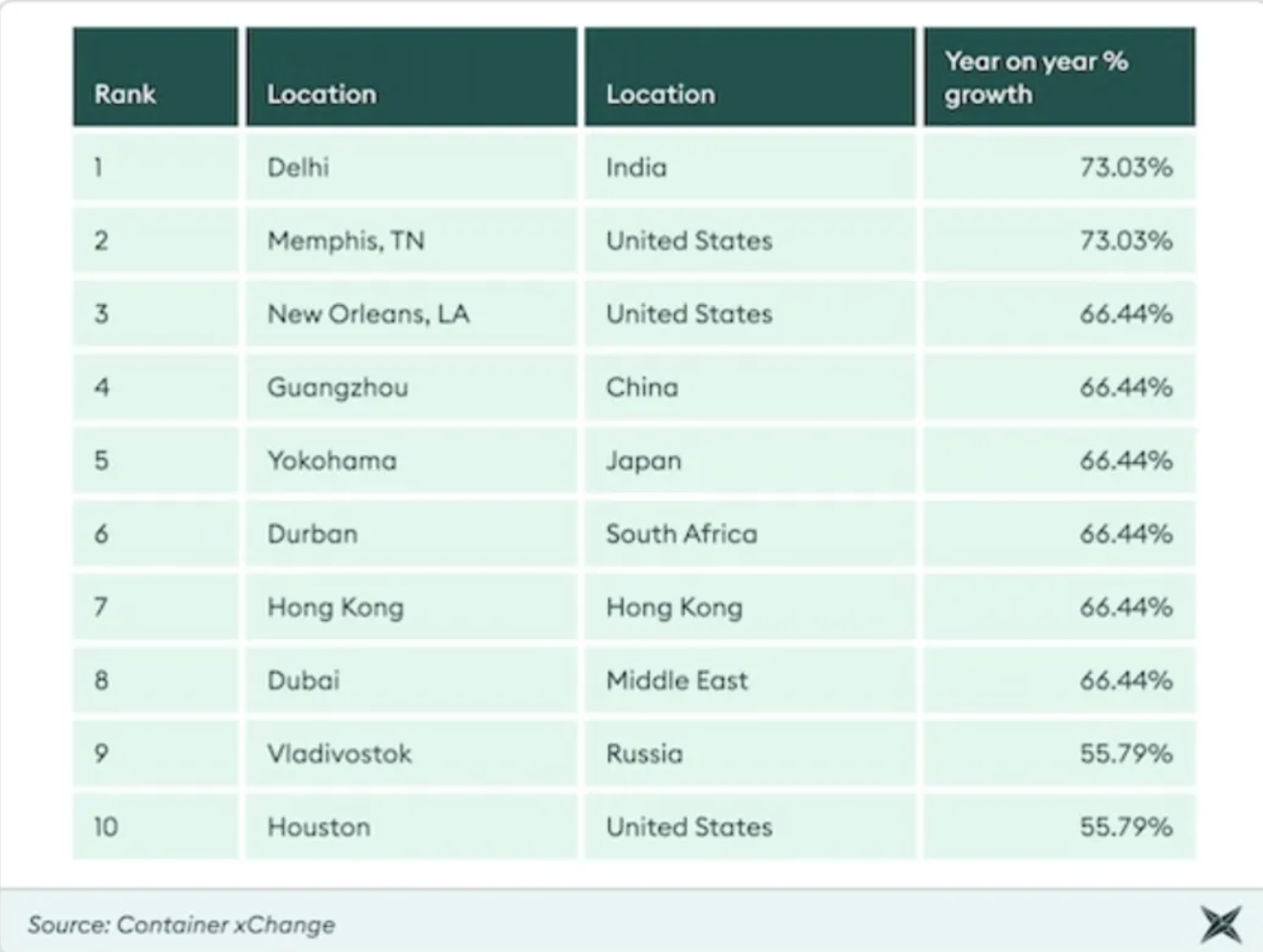 2024年12月以來(lái),美國(guó)達(dá)拉斯、邁阿密、新奧爾良和休斯敦等港口的二手集裝箱價(jià)格,同比與環(huán)比均呈現(xiàn)顯著增長(zhǎng),持續(xù)上升趨勢(shì)一覽無(wú)遺。縱觀全球集裝箱價(jià)格走勢(shì)(以40英尺箱計(jì)算),2023年12月至2024年12月,全球集裝箱價(jià)格經(jīng)歷了劇烈波動(dòng),部分地區(qū)顯著上升,而另一些地區(qū)則急劇下滑。集裝箱價(jià)格漲幅領(lǐng)銜的地區(qū)如下,其市場(chǎng)動(dòng)態(tài)受到市場(chǎng)需求激增、區(qū)域經(jīng)濟(jì)蓬勃發(fā)展或供應(yīng)鏈重組等因素推動(dòng)。