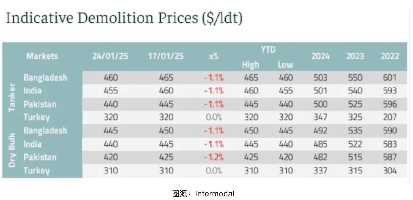 Intermodal在報(bào)告中寫道:“加拿大央行自6月以來連續(xù)第六次降息,以刺激需求和抑制通脹。世界銀行建議政府增加公共投資以促進(jìn)經(jīng)濟(jì)增長。巴基斯坦當(dāng)?shù)劁撹F市場面臨著來自廉價進(jìn)口產(chǎn)品的沖擊,限制了買家提供有競爭力價格的能力。船舶回收市場持續(xù)低迷,低廉的報(bào)價使得賣家望而卻步。”