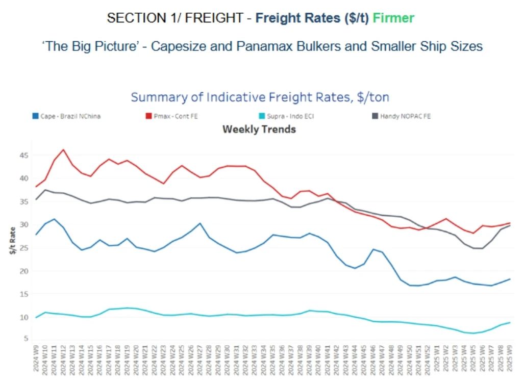 投行杰富瑞指出:“船舶經(jīng)紀(jì)商注意到本周現(xiàn)貨運輸量有所增加,尤其是來自澳大利亞的貨物,成為推動運價走強的關(guān)鍵因素。”
