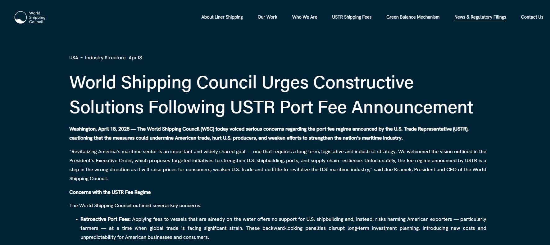 WSC首席執(zhí)行官Joe Kramek表示,振興美國(guó)本土海運(yùn)業(yè)固然是各方共識(shí),但這應(yīng)建立在一套長(zhǎng)期的產(chǎn)業(yè)戰(zhàn)略之上,而非臨時(shí)性征費(fèi)。